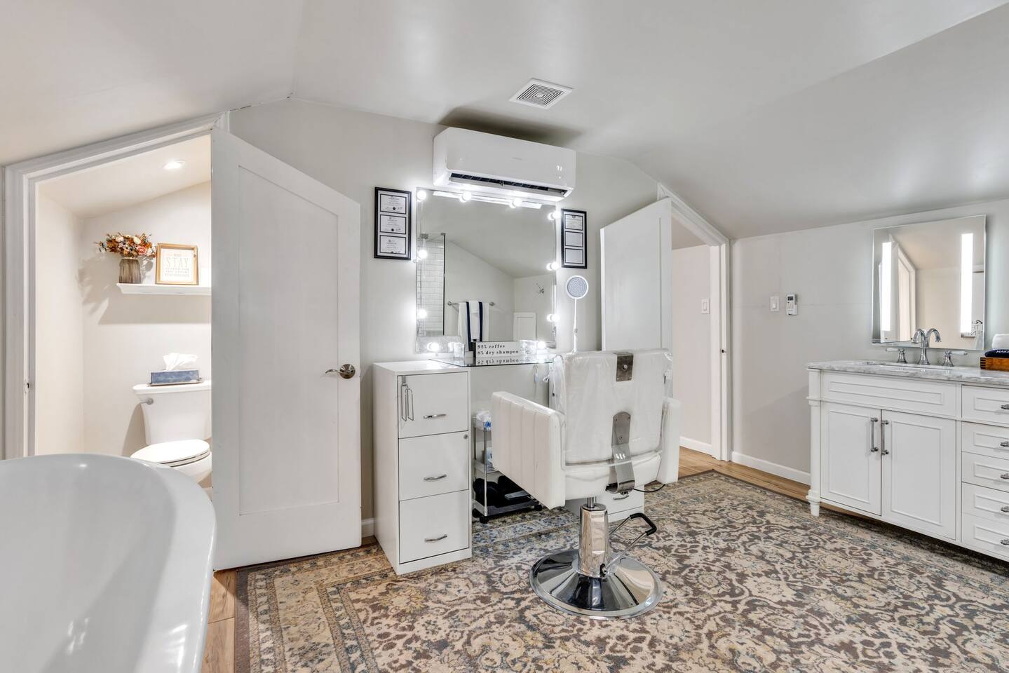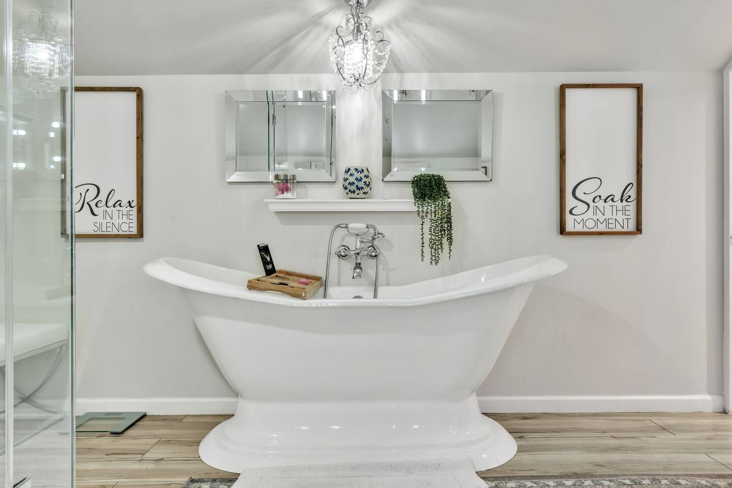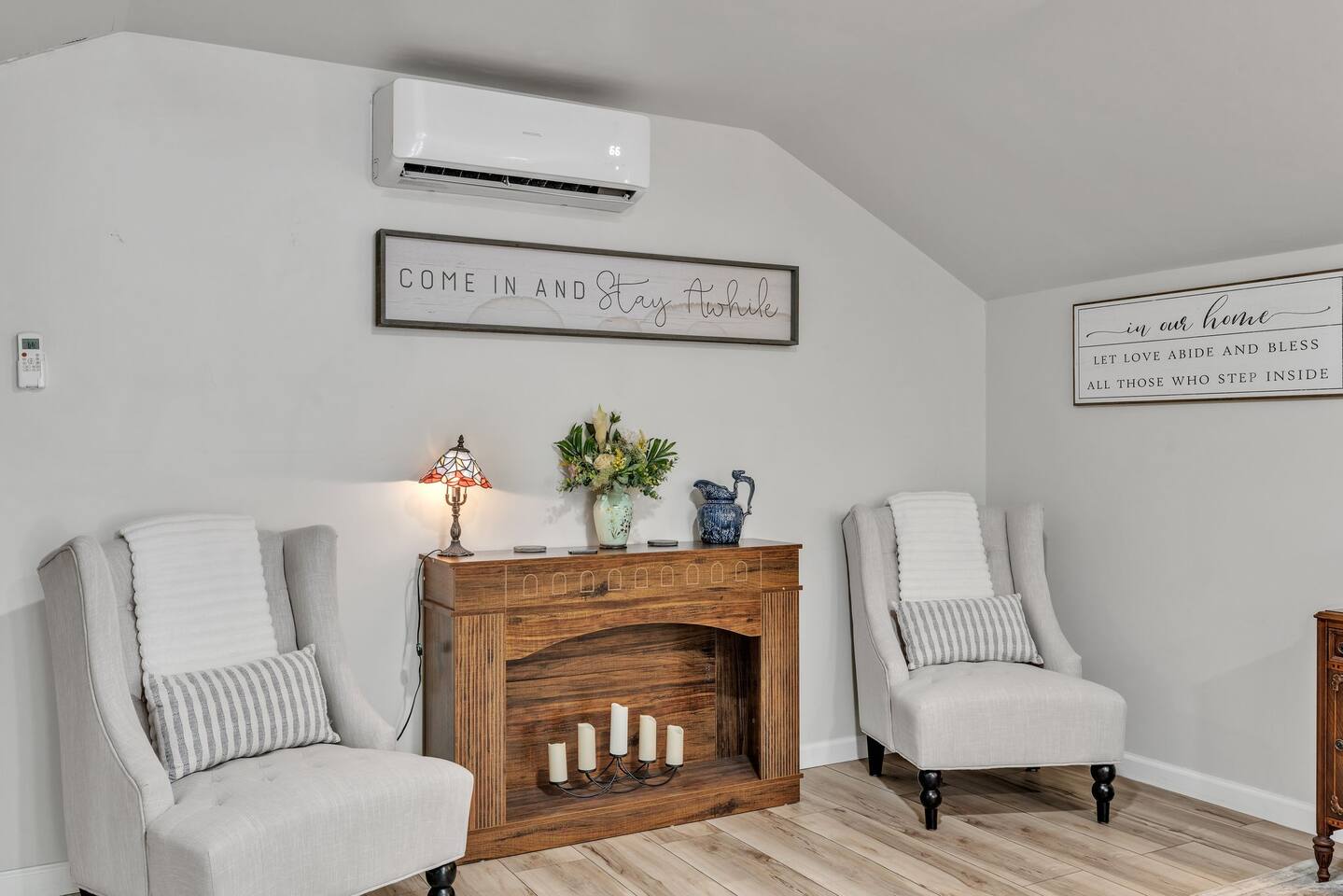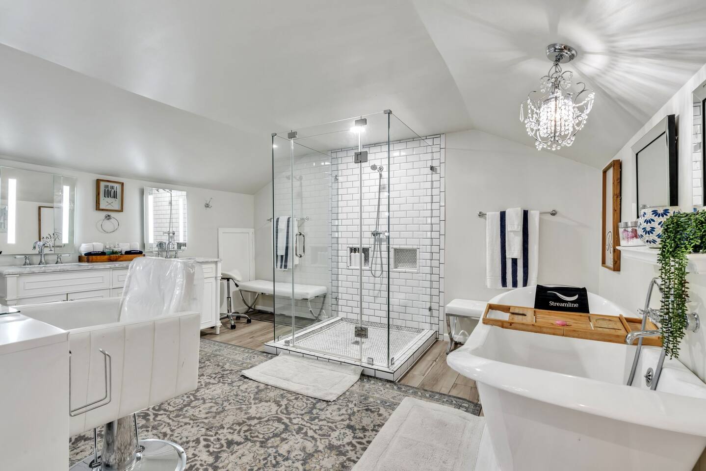 This dreamy, private studio is the perfect hideout for two. Inside, you'll find a plush king bed set beneath soft ambient lighting and romantic accents throughout. A cozy dining nook with a charming table setup is perfect for morning coffee or intimate meals. The soaking tub and full bathroom create a spa-like experience, while a sleek coffee station and thoughtful decorβlike candles, textures, and curated artβadd warmth and charm. Outside, step onto your private deck with a hot tub, seating area, and fire pit under the stars and a charcoal grill for sizzling BBQ. Whether you're celebrating something special or just escaping the everyday, this space is designed for connection, comfort, and calm.