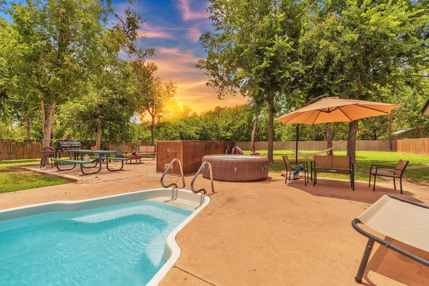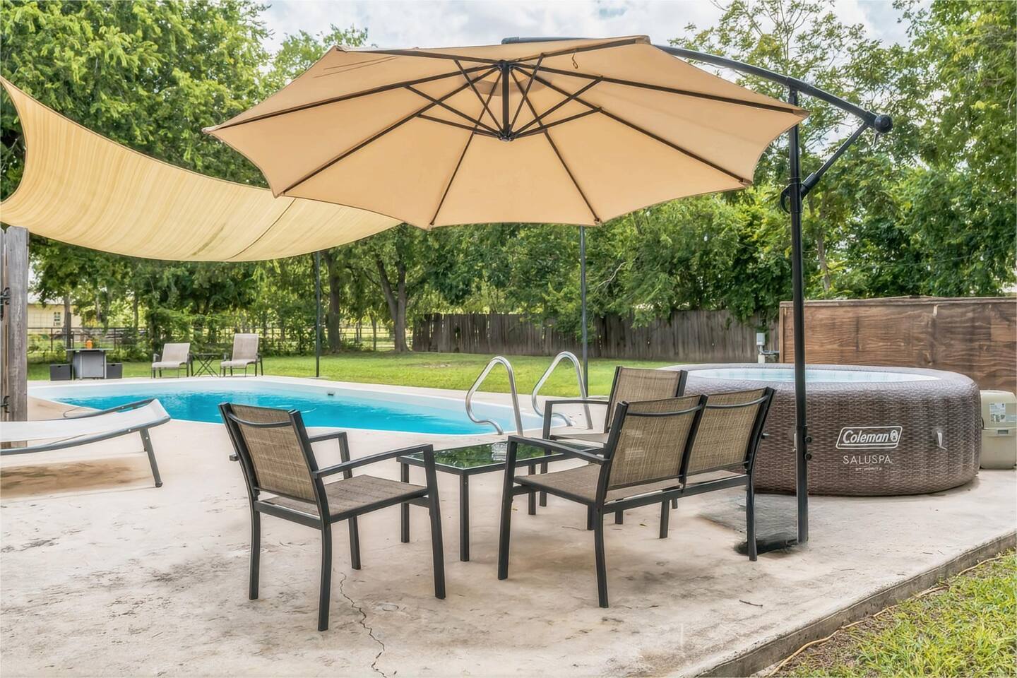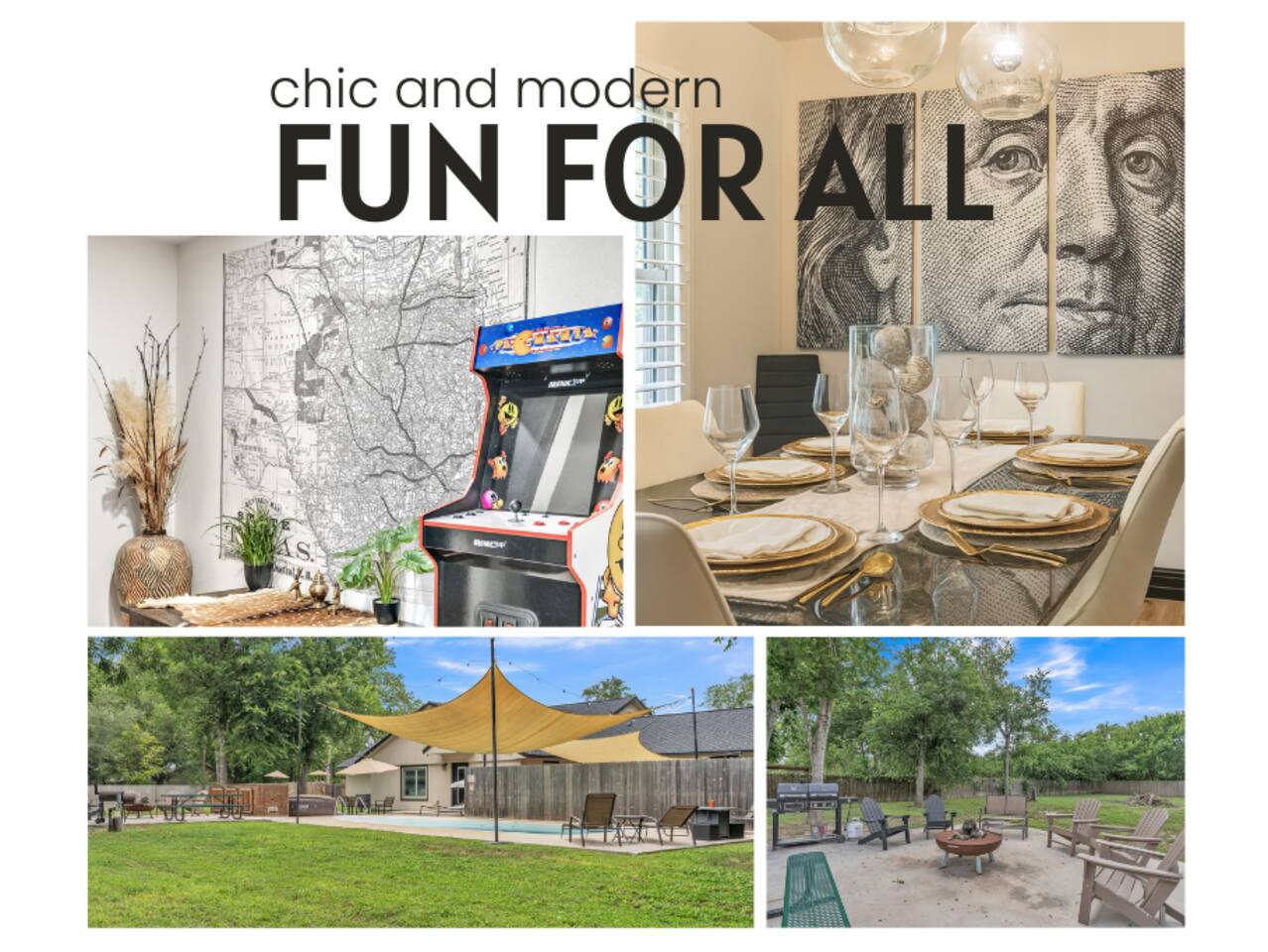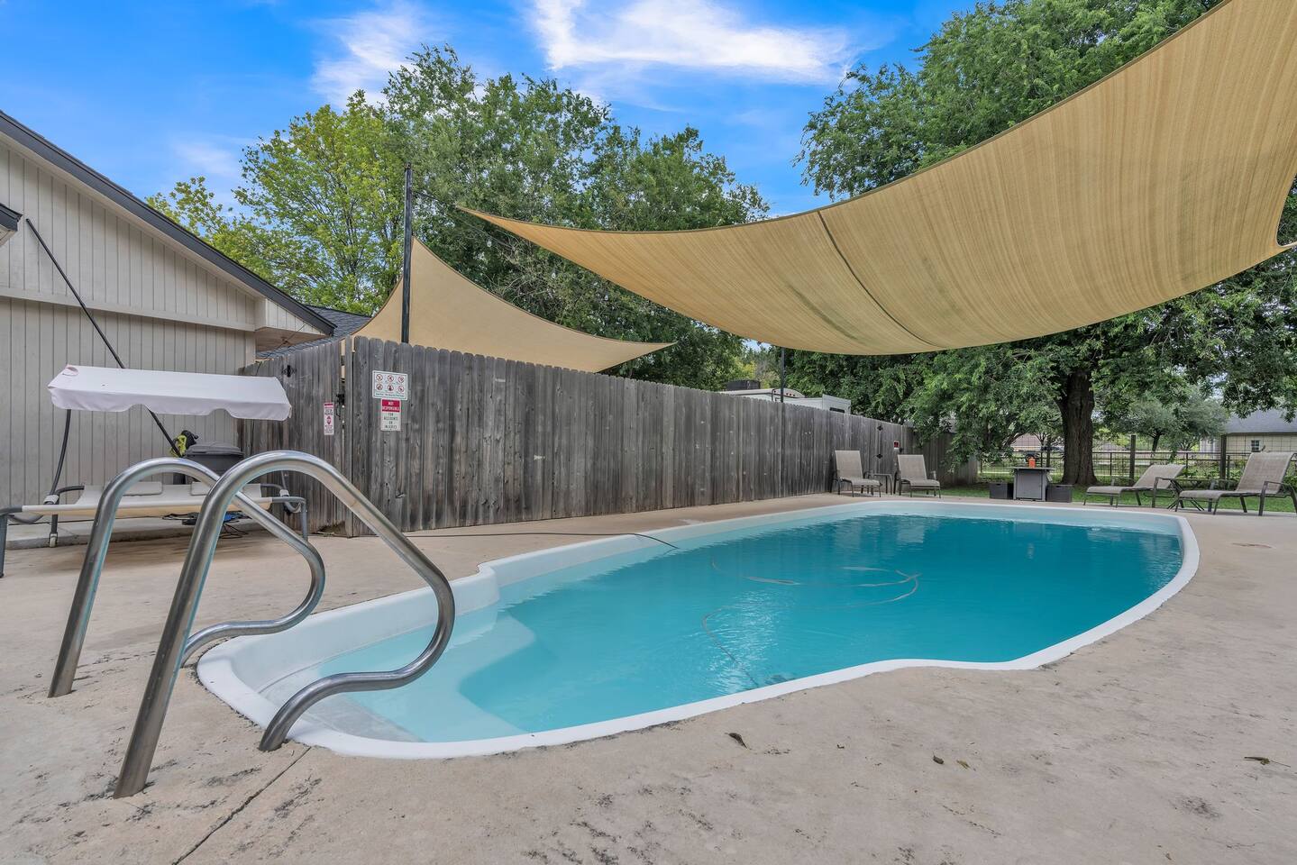 π Each bedroom has its own unique style, from bold and modern to cozy and classic π‘ 1-acre property with open space for yard games and photo ops π Fully fenced backyard for your groupβs exclusive use β no shared spaces πΊ Smart TVs in living room and select bedrooms πΆ Family-friendly amenities including crib and open layouts π ΏοΈ Large driveway with room for multiple cars, an RV, or a boat π§Ό Professionally cleaned and sanitized before each stay π· Outdoor security cameras (pool, front door, driveway) for safety π Attached mother-in-law suite is a separate unit and may be occupied; your main house, driveway, and backyard are fully private