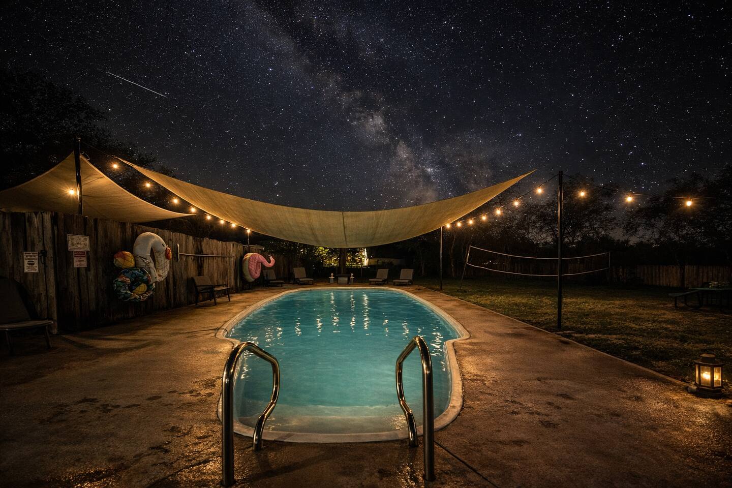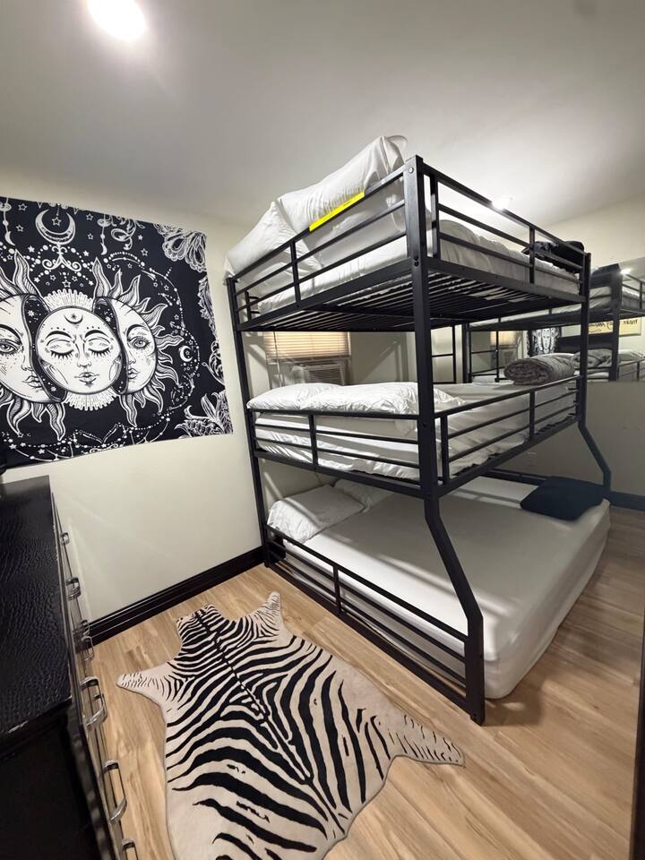 βCONTACT US FOR SEASONAL DISCOUNTSβ Large families and groups are welcome! This unit sleeps 17 in beds and couches, and 22 with air mattress. If you book with the upstairs suite, it can accommodate up to 24 guests. Please send a message with your exact guest count before booking. βMaster/Grey Bedroom:β β Relaxing primary suite with stylish dΓ©cor and plenty of space β King bed, sleeps 2, room-darkening shades, clothing storage, Playpen for little one, Smart TV, extra pillows & blankets βBlue Bedroom:β β Thoughtfully themed guest room that adds character and fun β Queen bed, sleeps 2 wardrobe storage, Smart TV β Twin mattress and a queen air mattress in the closet, sleeps 3 β Black Bedroom:β β Cozy and inviting bedroom ideal for couples or friends β Triple bunk bed two full beds over queen, sleeps 4 closet storage, fresh linens βOrange Bedroom:β β Spacious guest room designed for flexible group stays β Queen bed, sleeps 2, closet storage, comfortable bedding β Another queen and a twin size blow up mattress in the closet, sleeps 3 βLiving Room:β β Open-concept gathering space perfect for movie nights and group hangouts β Comfortable seating, large TV, indoor fireplace, private living area β 2 Long couches and 2 shorter couches sleep 4 βKitchen and Dining Area:β β Fully stocked kitchen built for feeding a crowd β Gas stove, oven, microwave, dishwasher, refrigerator, freezer β Coffee maker + espresso machine, blender, kettle, toaster, wine glasses β Cooking basics and a dining table that seats up to 10 βBathrooms:β β Two well-appointed bathrooms stocked for comfort and convenience β Bathtub, hot water, shampoo, conditioner, body soap, shower gel, hair dryer βOutdoor Space:β β Private, fully fenced backyard designed for all-day fun β Large pool for summer days (available March 1 β Nov 1) β Hot tub for relaxing evenings (available Oct 1 β March 31) β Outdoor kitchen, BBQ grill, picnic & dining areas β Fire pit, hammock, sun loungers, volleyball court, and open yard space βAdditional Amenities:β β Game room with pool table & arcade games, In-ground pool, Hot Tub, Volleyball β In-unit washer & dryer, drying rack, iron, safe β Dedicated workspace with fast WiFi & Ethernet βParking and Facilities:β β Large private driveway with space for multiple vehicles β Room for a boat or RV β Free street parking available βServices:β β Self check-in with private entrance β Luggage drop-off allowed β Long-term stays welcome (28+ days) β Optional mid-stay cleaning available (Tuesdays, additional cost) β Pet-friendly with prior approval Your stay at McQueeney Lake Retreat promises big fun, relaxed comfort, and unforgettable group memories. Book now and experience the Texas Hill Country in true resort style.