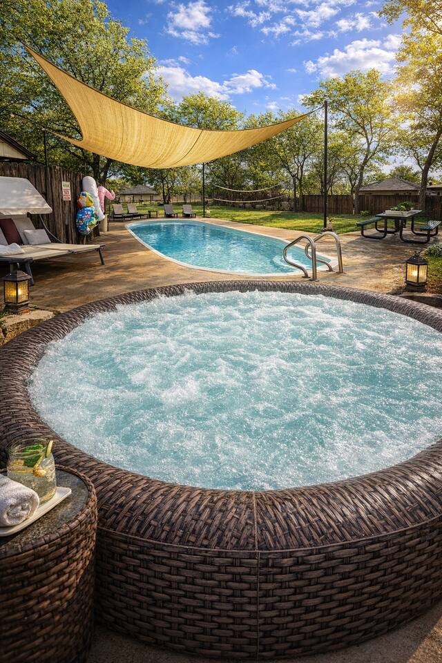 π Each bedroom has its own unique style, from bold and modern to cozy and classic π‘ 1-acre property with open space for yard games and photo ops π Fully fenced backyard for your groupβs exclusive use β no shared spaces πΊ Smart TVs in the living room and select bedrooms πΆ Family-friendly amenities including crib and open layouts π ΏοΈ Large driveway with room for multiple cars, an RV, or a boat π§Ό Professionally cleaned and sanitized before each stay π· Outdoor security cameras (pool, front door, driveway) for safety π Attached mother-in-law suite is a separate unit and may be occupied; your main house, driveway, and backyard are fully private